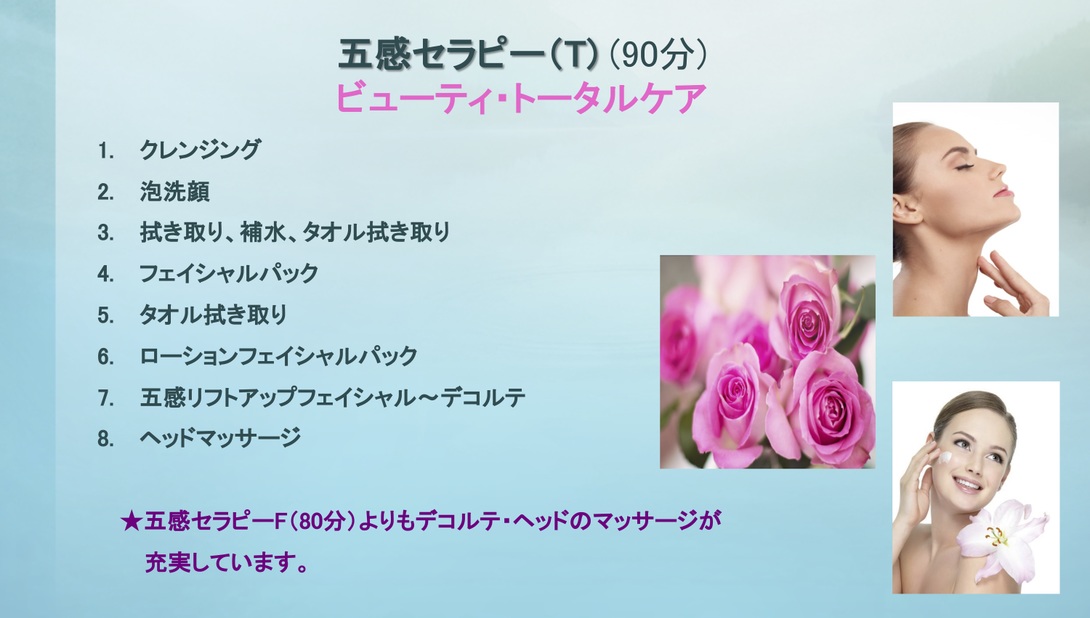 2、五感癒しセラピー (T) ビューティー・トータルケア(90分)